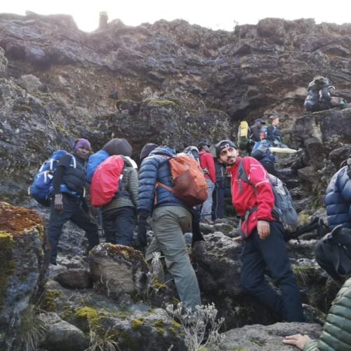Your day starts early Kilimanjaro trekking with a steaming cup of tea or coffee. After breakfast, you will climb steeply through thinning forest glades to Giant Erica, Heather, and drier air. You continue up a ridge that drops steeply on both sides, and hopefully, the clouds will part to reward you with a view of Uhuru Peak looming overhead. After lunch, you enter a zone of giant groundsels (Scenario Kilimanjaro) that seem to guard the heights, and this garden is one of Kilimanjaro’s special treasures.